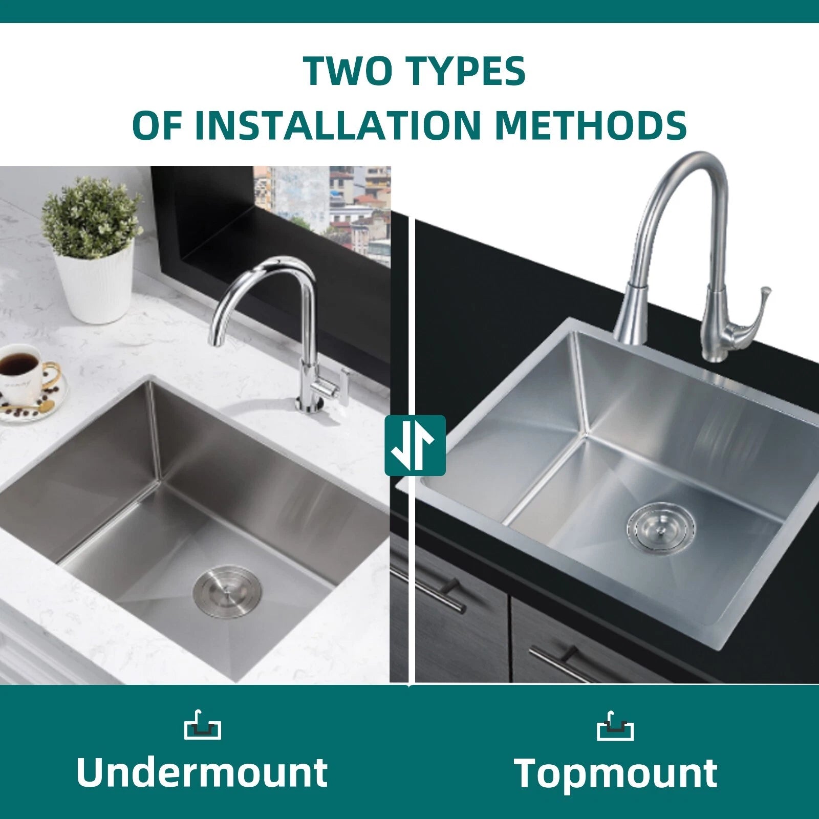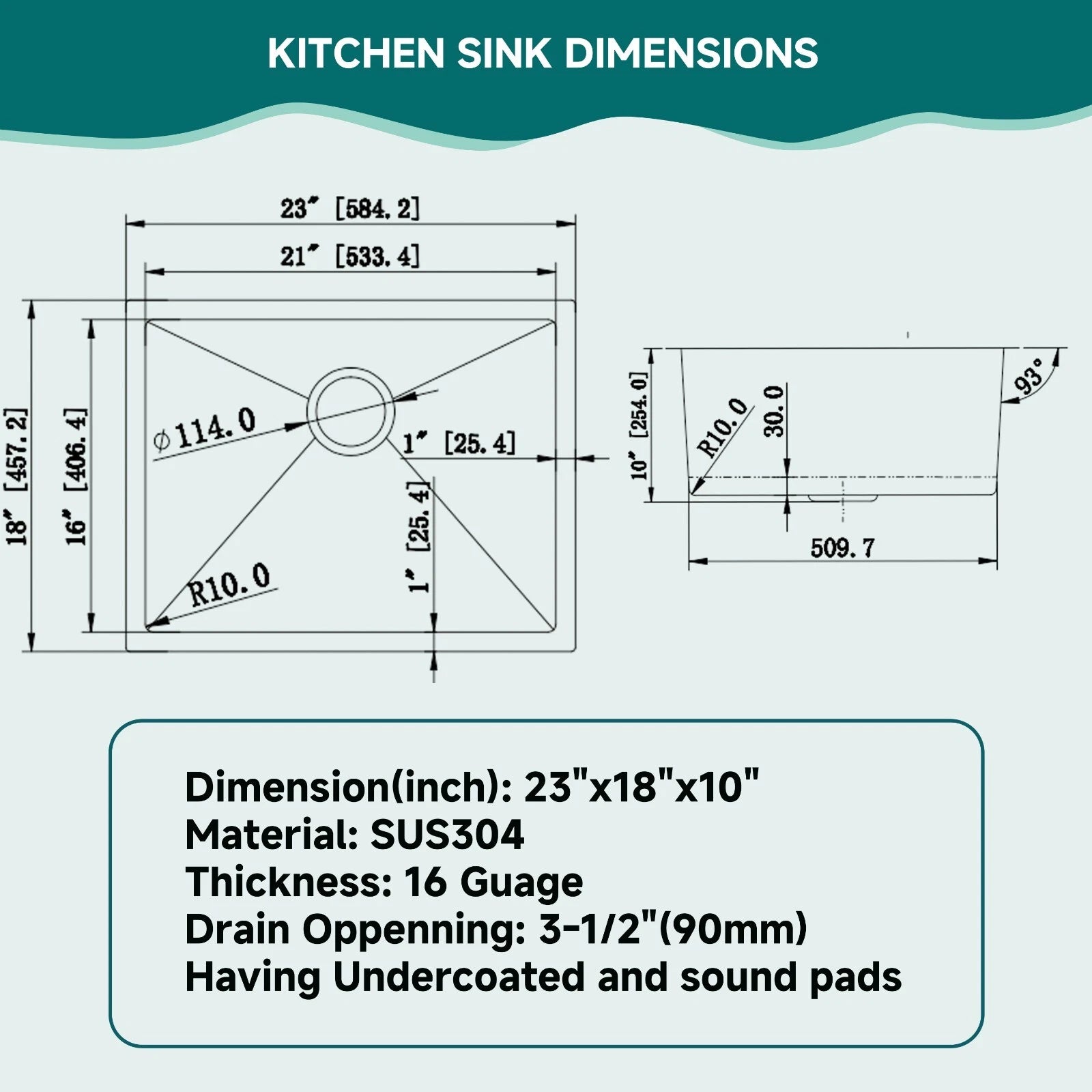 23x18 Undermount Kitchen Sink, Single Stainless Steel Sink, Square Kitchen Sink